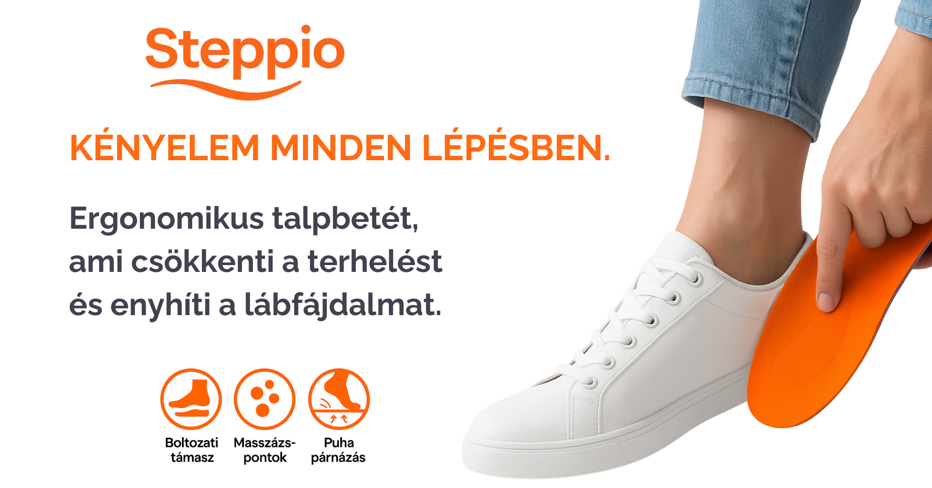 A Steppio™ ergonomikus talpbetét egy innovatív, anatómiai kialakítású cipőbetét, amely támogatja a láb természetes boltozatát, csökkenti a terhelést, és segít megelőzni a lábfájdalmat. Ideális mindennapi használatra, sporthoz és munkához is.