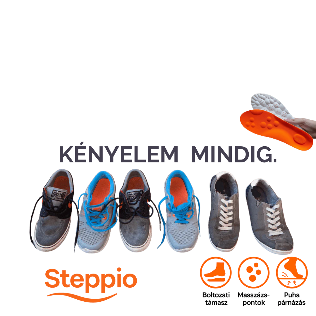 A Steppio™ ergonomikus talpbetét egy innovatív, anatómiai kialakítású cipőbetét, amely támogatja a láb természetes boltozatát, csökkenti a terhelést, és segít megelőzni a lábfájdalmat. Ideális mindennapi használatra, sporthoz és munkához is.